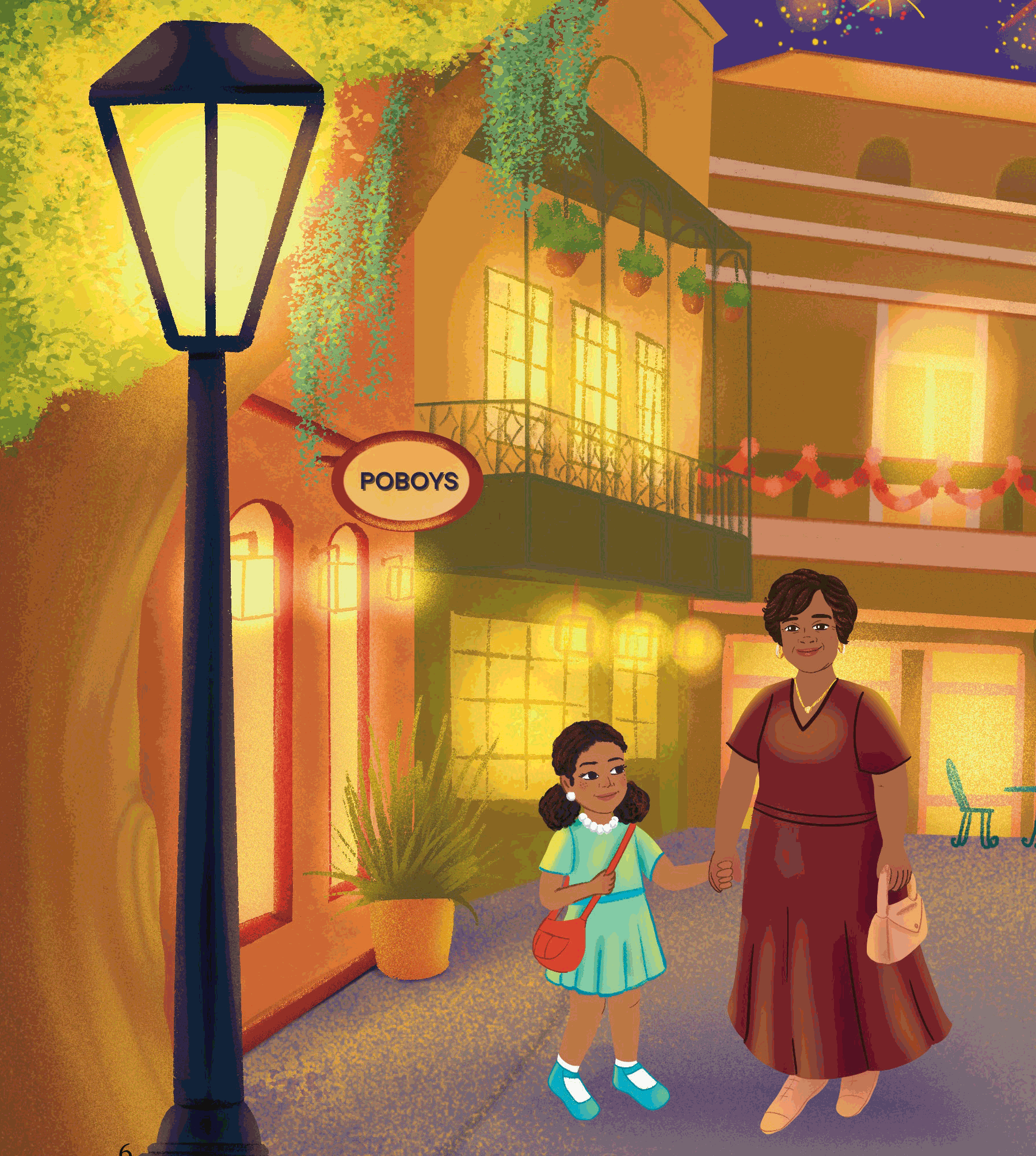“Their neighborhood pulsed with rhythm. Neighbors called out greetings, music drifted from porches, and the scent of gumbo and beignets lingered in the breeze while streetcar bells ding‐dinged two blocks away.”