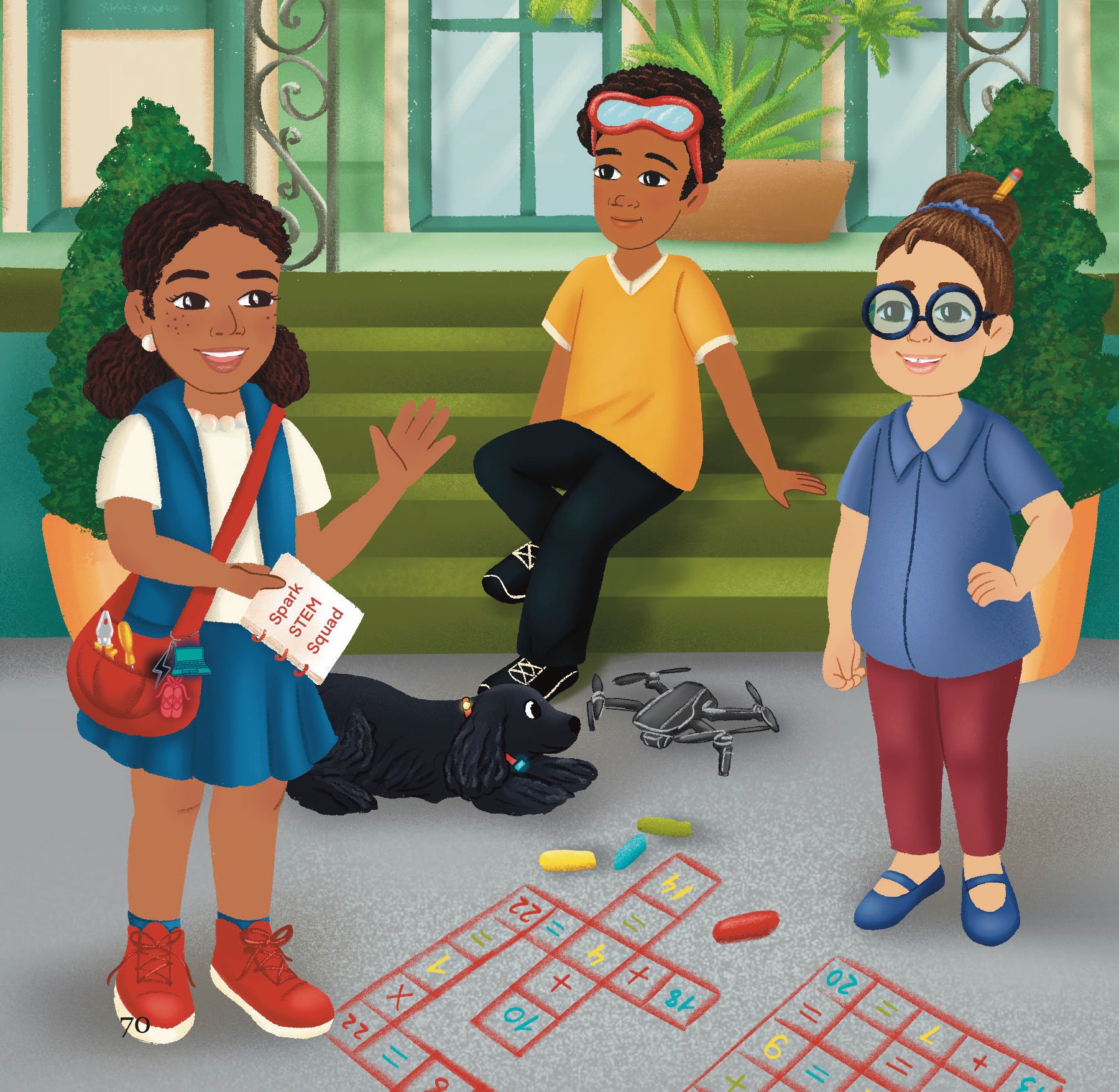 “How about a club? We can name ourselves the Spark STEM Squad! We imagine, we design, we solve, and we spark change to make our city shine.”